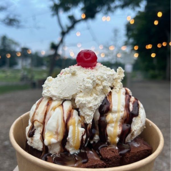 We serve cups and cones in over a dozen flavors, including classics like Chocolate, Vanilla, & Mint Chip, and farm favorites like Black Raspberry, Salty Caramel Truffle, and Coffee Oreo. Keep an eye out for seasonal sundaes that incorporate our LWF baked goods and apple cider donuts!